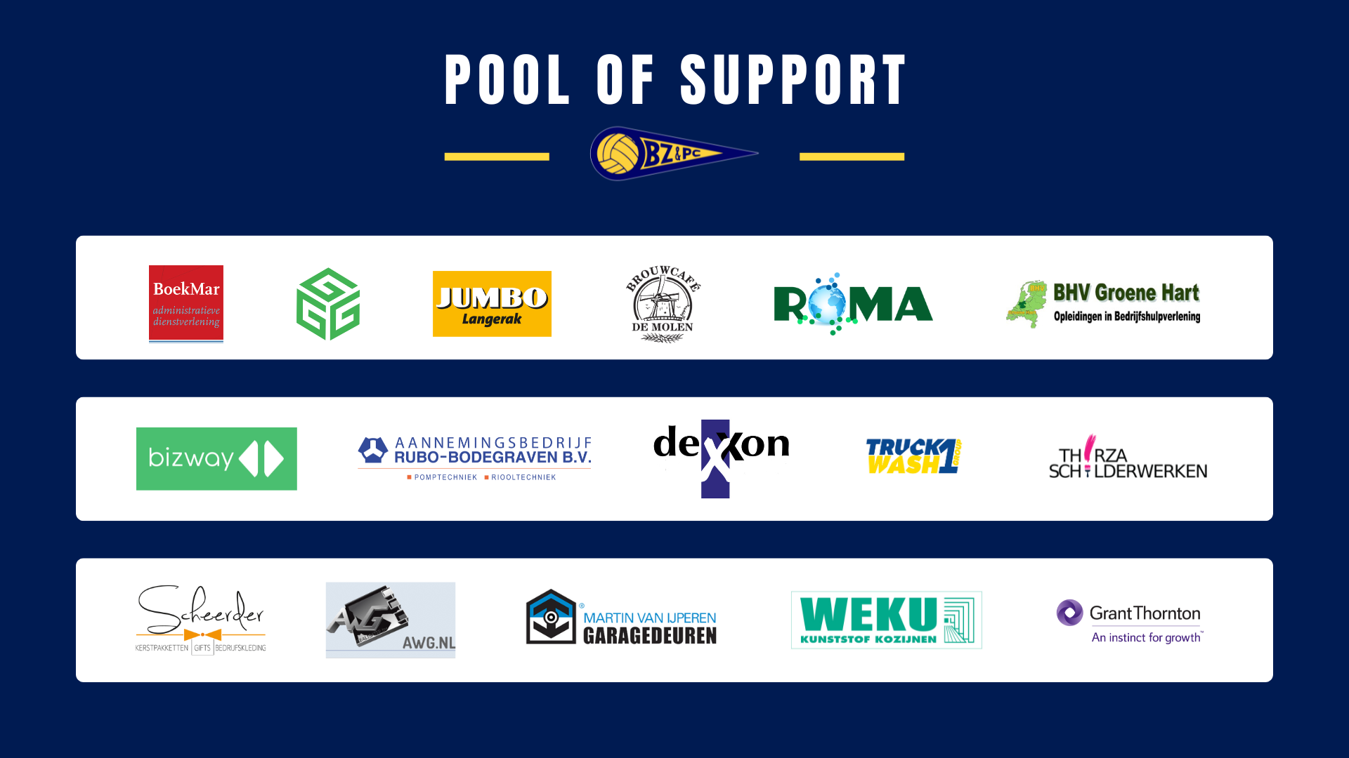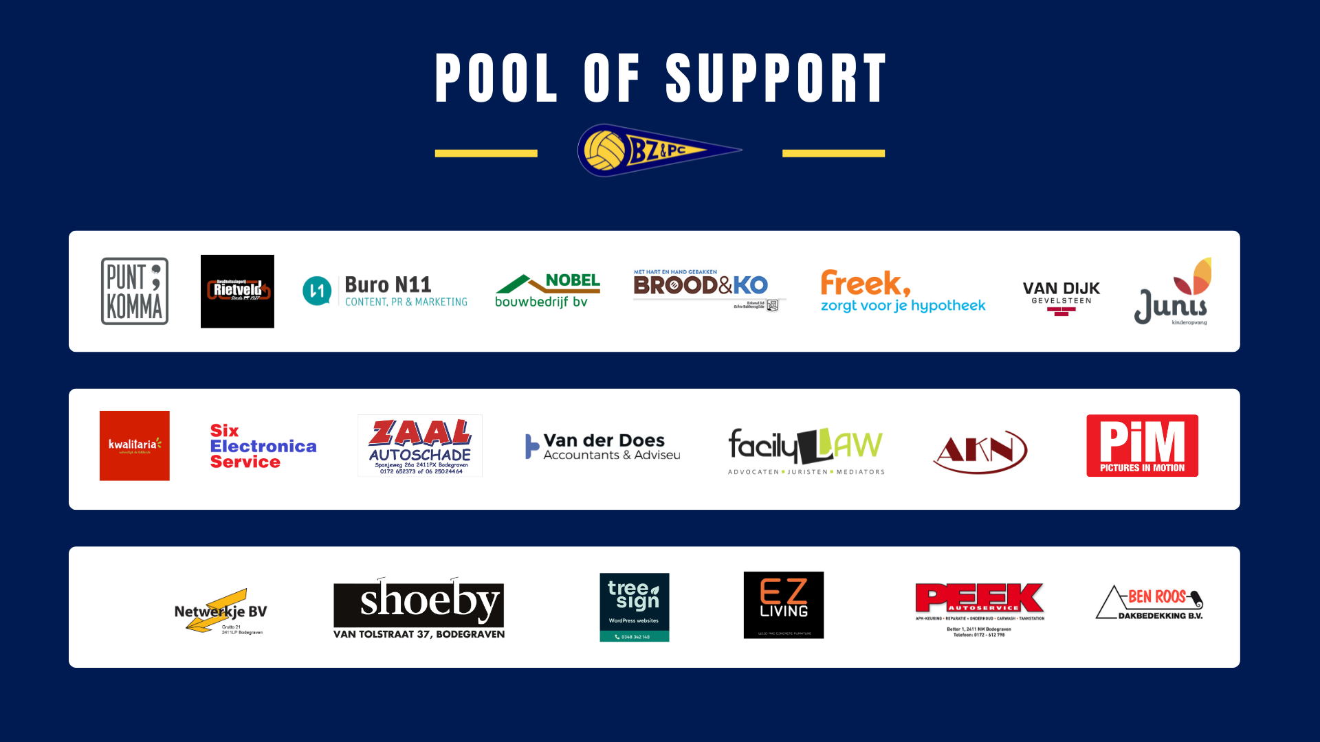 Wil je ook één van de gezelligste bedrijven van Nederland worden? Neem contact op via sponsoring@bzpc-bodegraven.nl